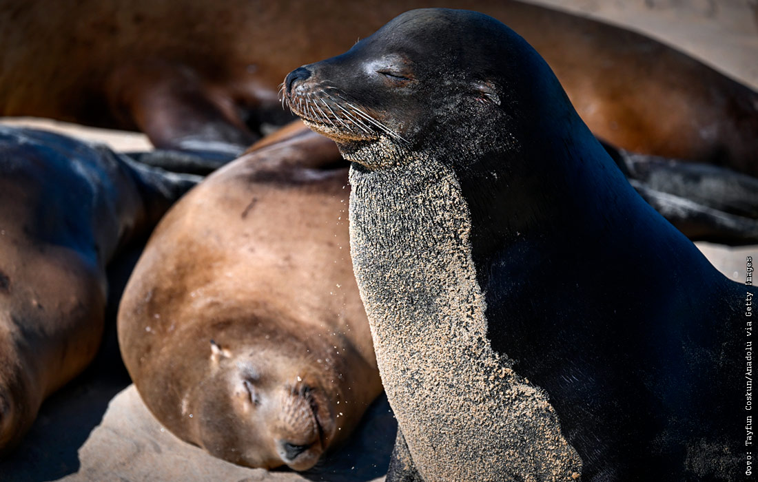 Морские львы на пляже Сан-Карлос в Калифорнии