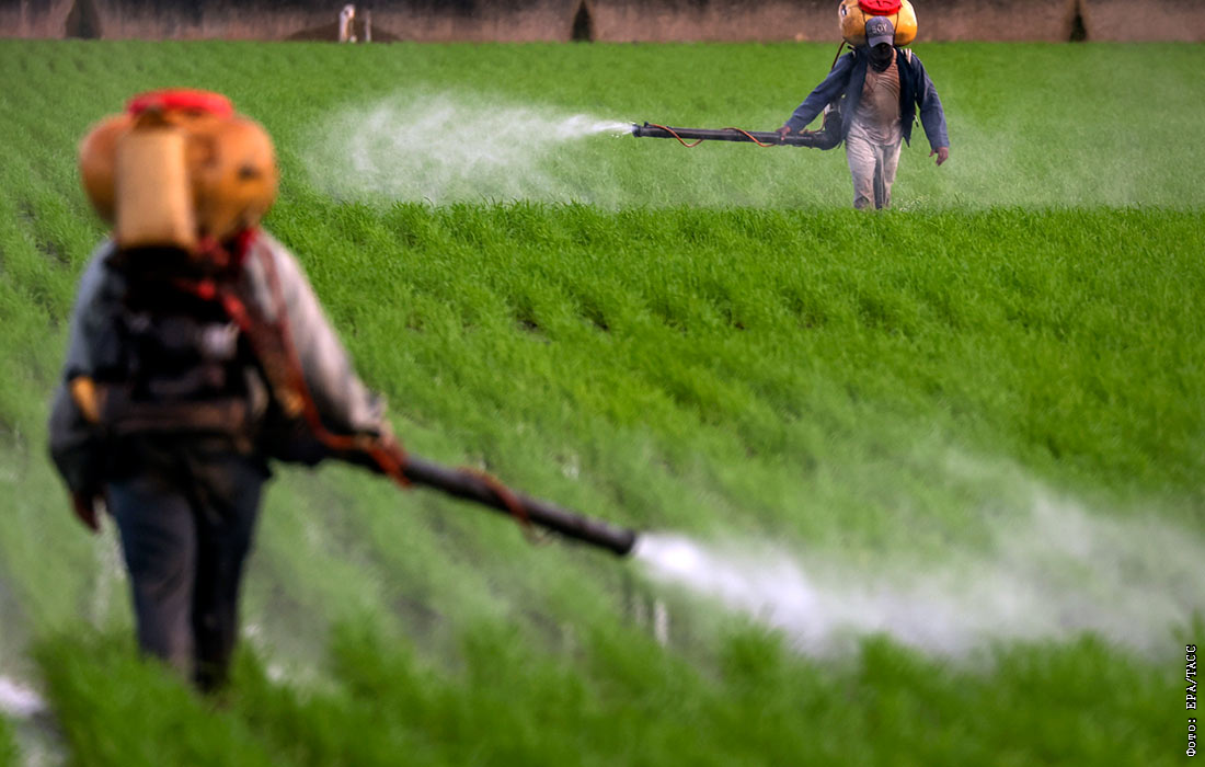 Распыление удобрения на рисовом поле в Сунгай-Бесаре, Малайзия