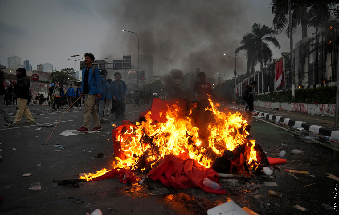 Акции против внесения поправок в избирательное законодательство перед зданием парламента Индонезии в Джакарте
