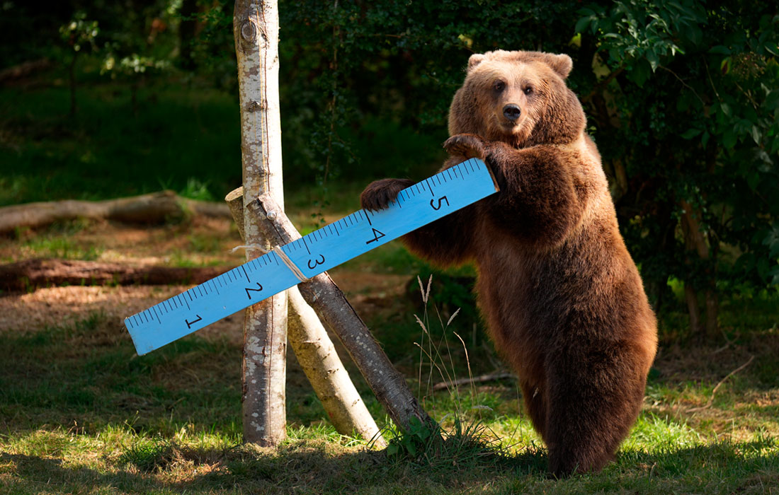 Бурый медведь во время ежегодного взвешивания в Уипснейдском зоопарке, Великобритания