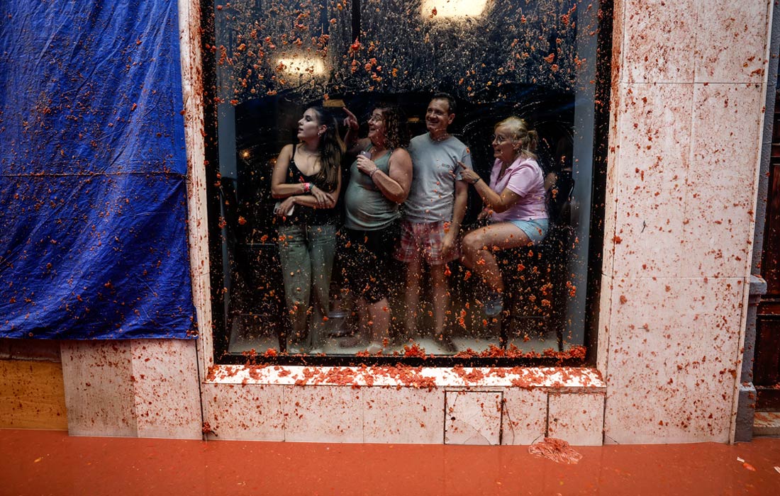 В испанском городе Буньоле недалеко от Валенсии прошел ежегодный праздник Ла Томатина, во время которого на улицах развернулась настоящая битва помидорами. В мероприятии ежегодно принимают участие более 20 тысяч человек. Для "побоища" понадобилось шесть грузовиков со 150 тоннами спелых томатов.