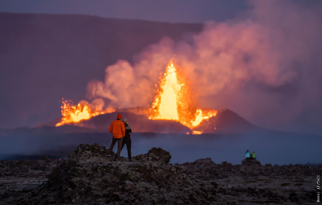 На полуострове Рейкьянес в Исландии продолжается извержение вулкана