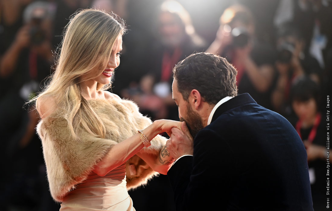 Актриса Анджелина Джоли и режиссер Пабло Ларраин во время премьеры фильма "Мария" на Венецианском кинофестивале