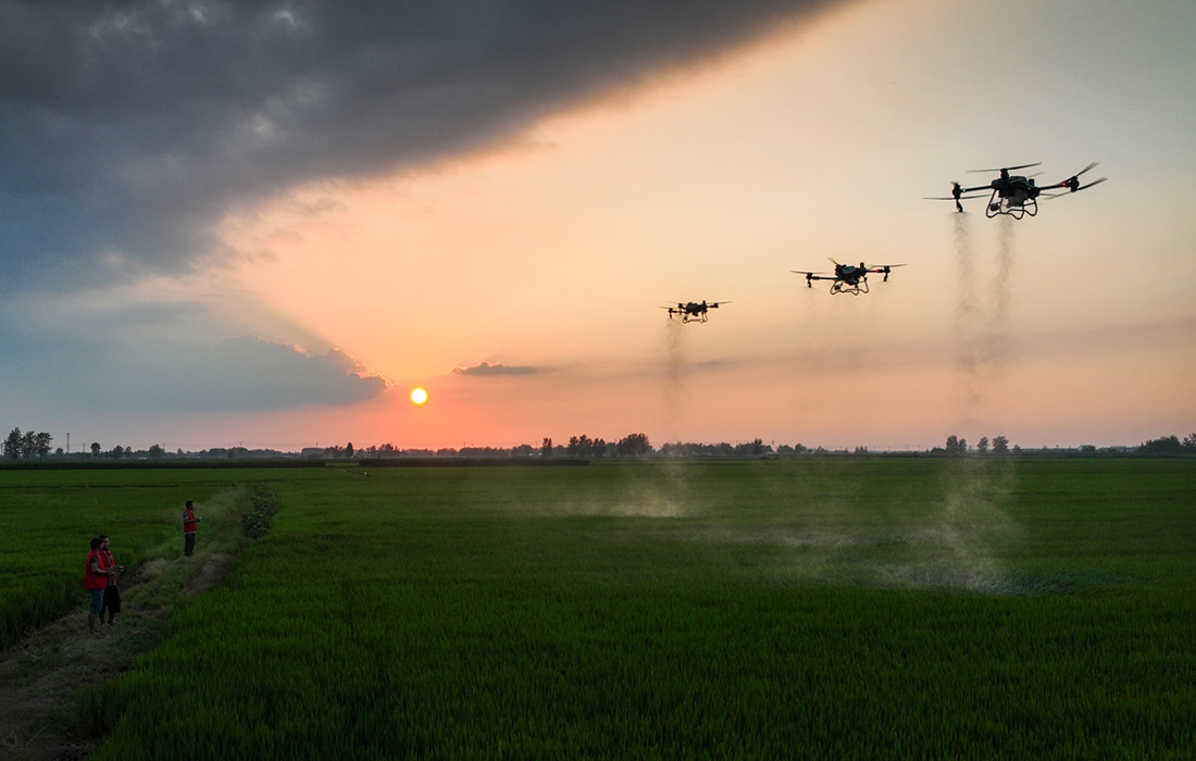 Фермеры в Китае используют дроны для распыления пестицидов