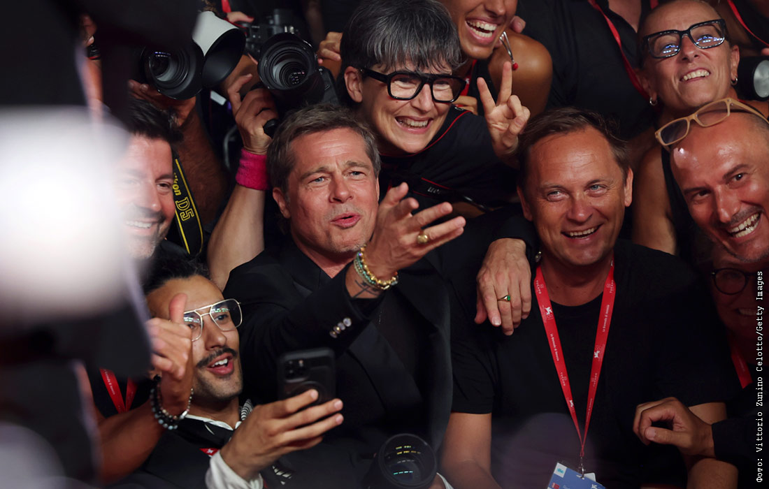 Брэд Питт общается с фотографами во время Венецианского международного кинофестиваля