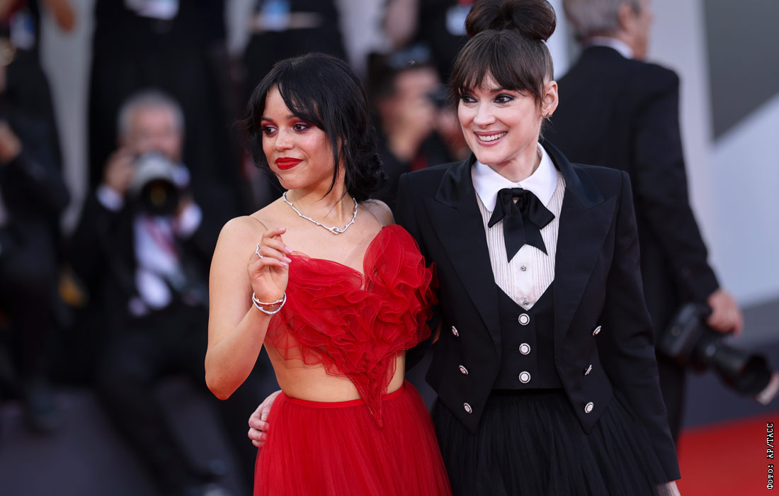 Дженна Ортега и Вайнона Райдер на церемонии открытия Венецианского кинофестиваля