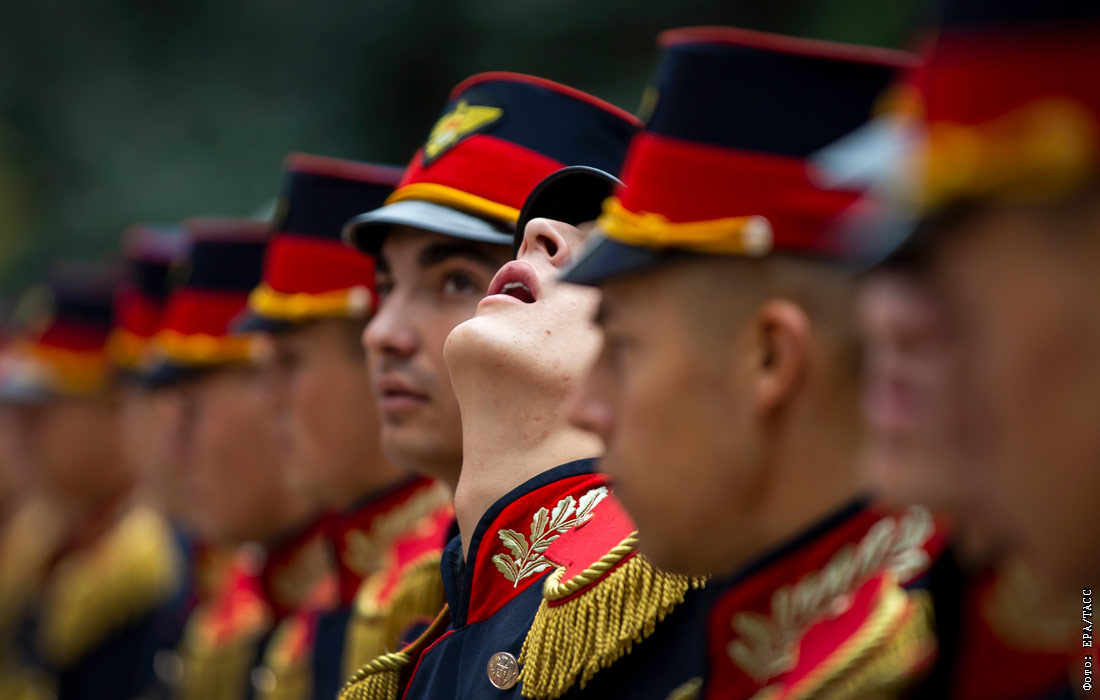 Военнослужащие перед церемонией приветствия премьер-министра Польши в Кишиневе
