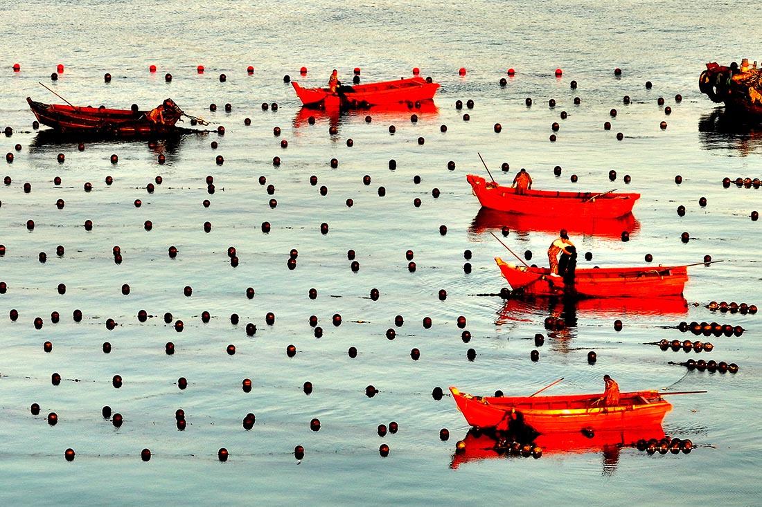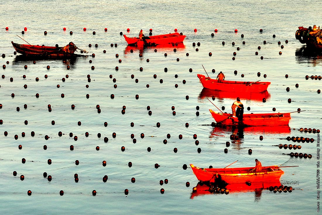 Рыбаки в заливе Айлунь, Китай