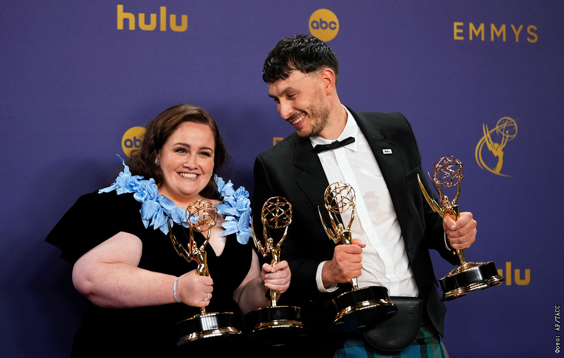 Сериал "Олененок" получил шесть наград премии "Эмми", в том числе как лучший мини-сериал. На фото: британская актриса Джессика Ганнинг и Ричард Гадд, сценарист и исполнитель главной роли в сериале.