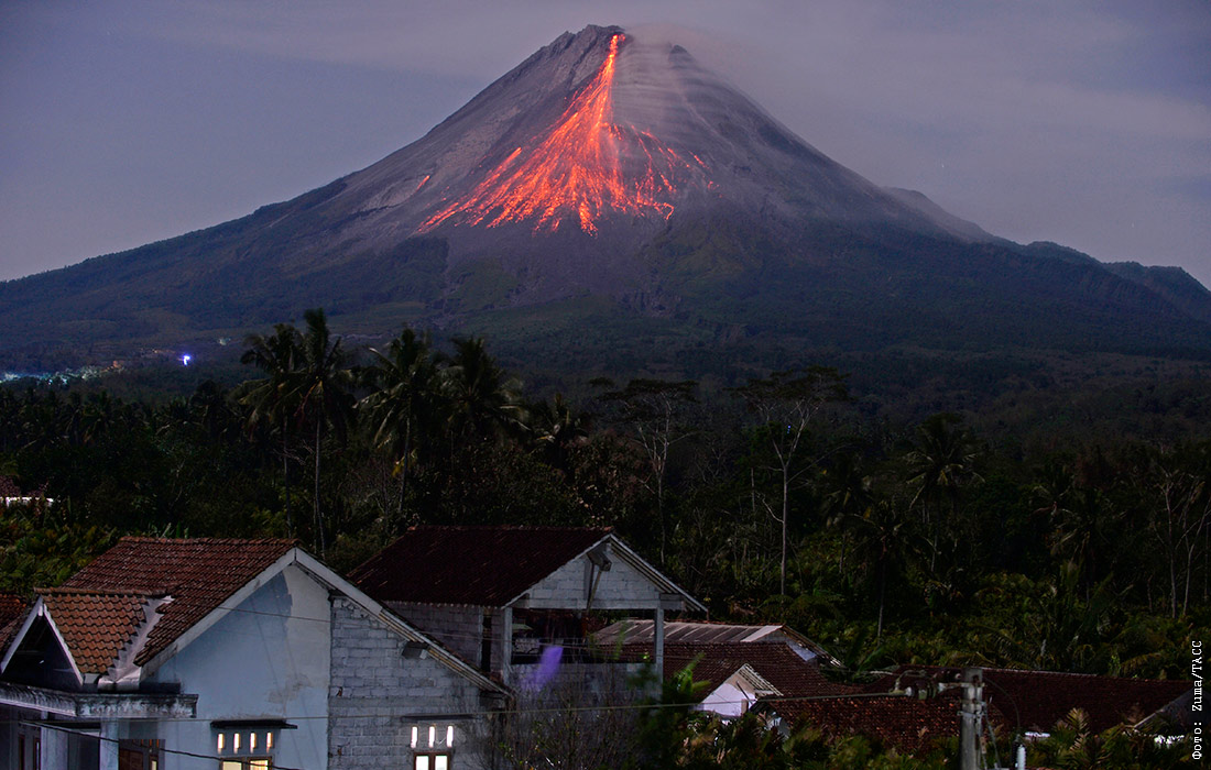 Вулканическая активность Мерапи в Центральной Яве, Индонезия