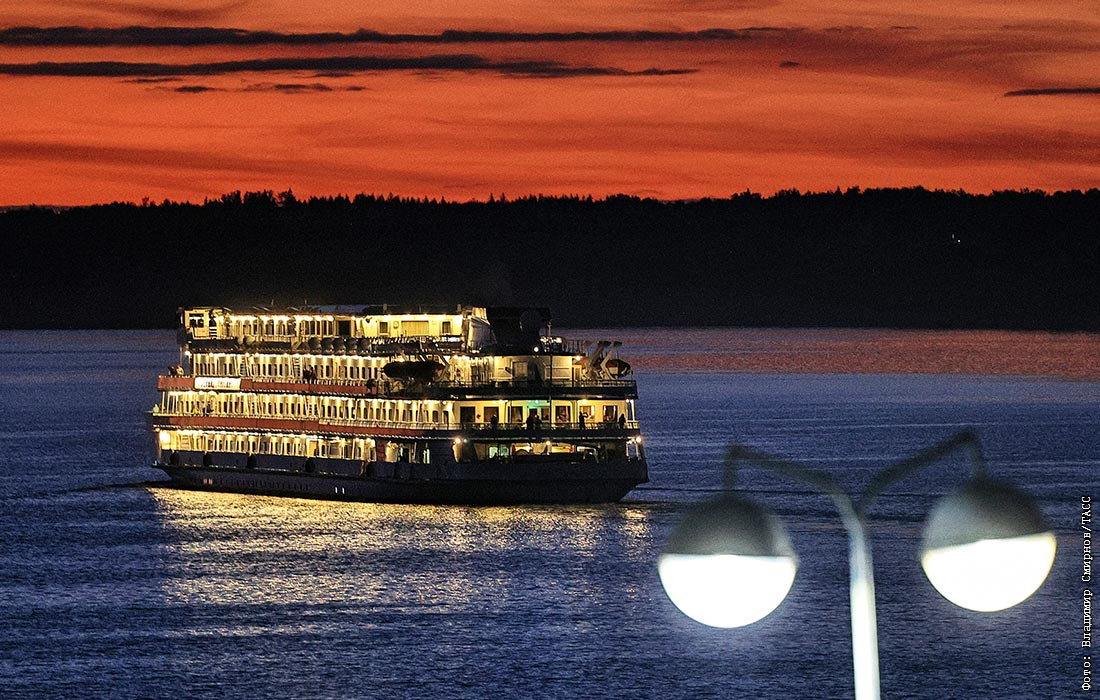 Теплоход "Леонид Красин" на реке Волга в Ивановской области