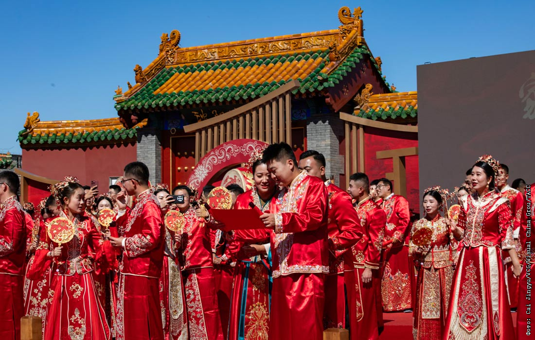 Традиционная массовая свадьба в китайской провинции Ляонин