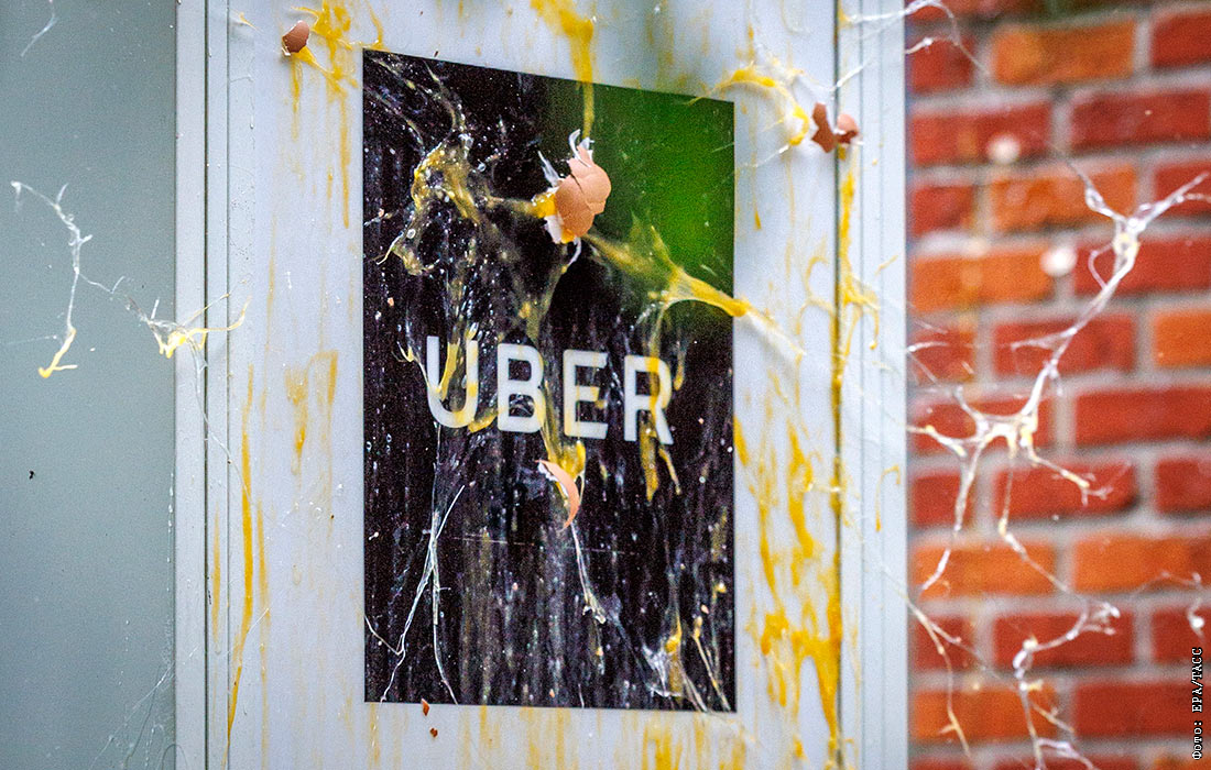 Водители такси Uber забросали яйцами штаб-квартиру компании в Брюсселе на акции протеста с требованием улучшения условий труда и повышения заработной платы