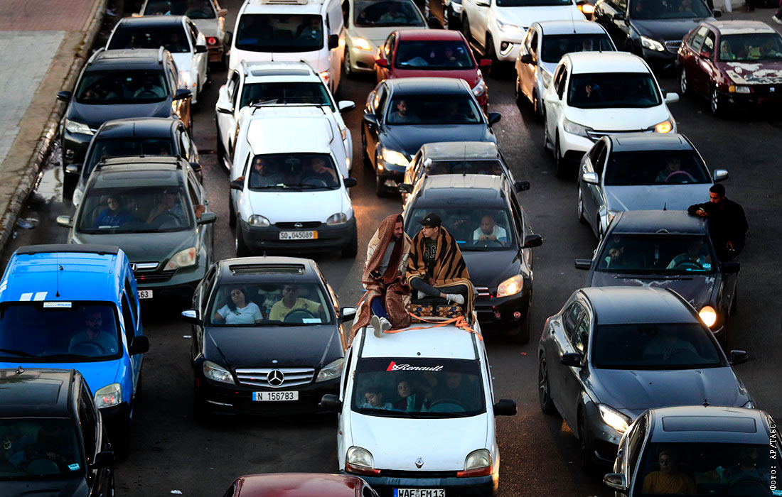 Ливанские граждане, покинувшие южные деревни из-за продолжающихся израильских авиаударов, на шоссе, ведущем в Бейрут