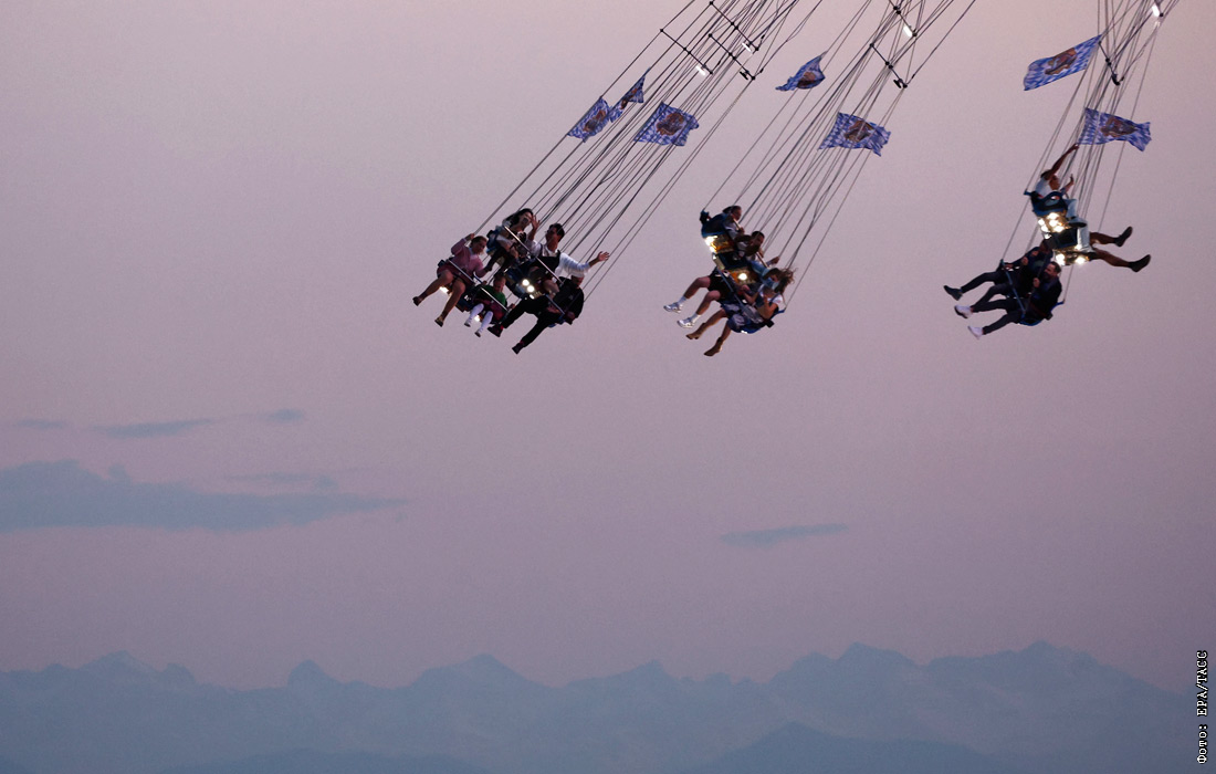 На празднике имеется множество аттракционов - от традиционных каруселей до современных конструкций вроде американских горок