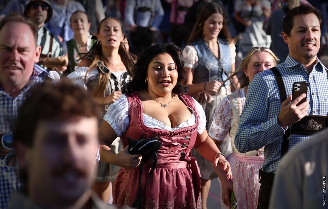 Главный символ праздника - баварские девушки, одетые в национальное платье дирндль