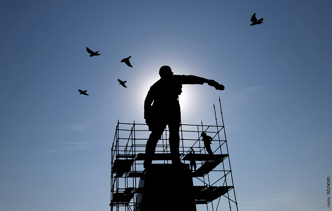 Подготовка памятника Владимиру Ленину в Санкт-Петербурге к реставрации