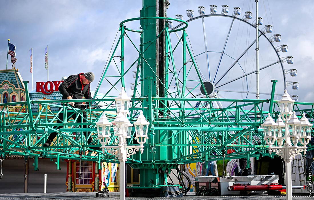 Подготовка к фестивалю Kramermarkt в Ольденбурге, Германия