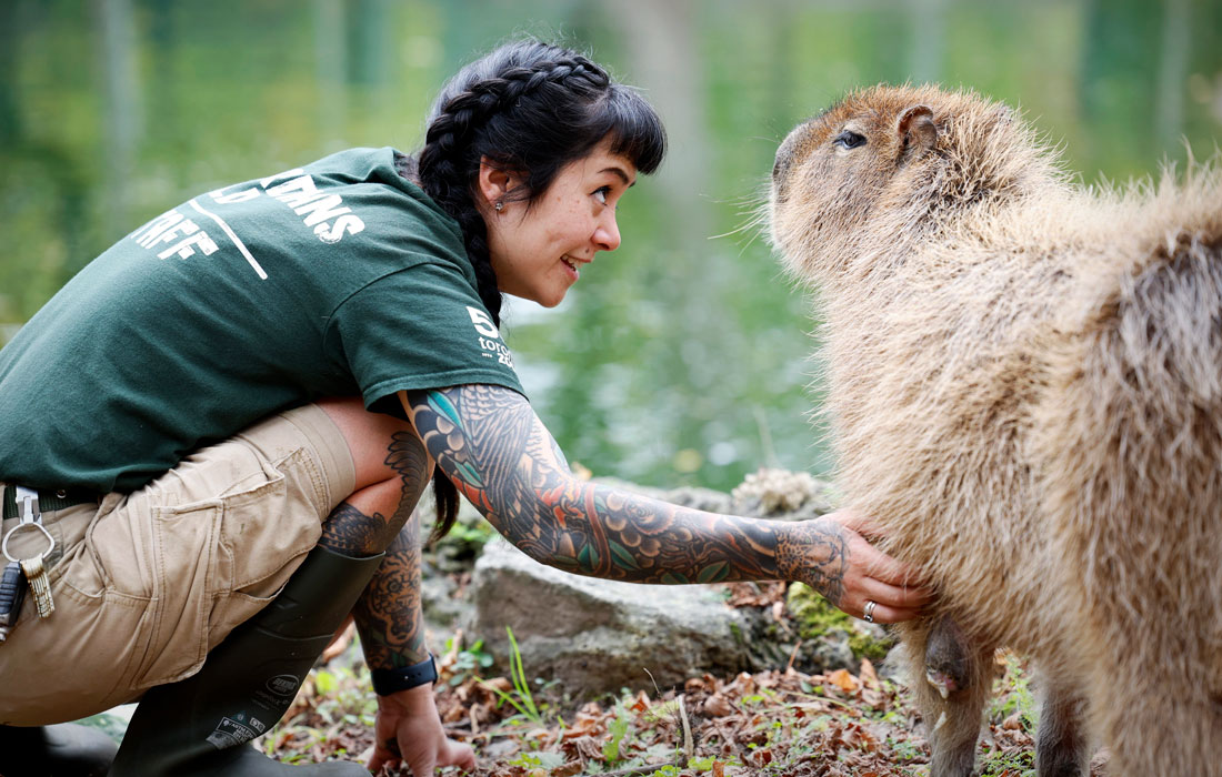 Новый сотрудник зоопарка знакомится с капибарой в Торонто