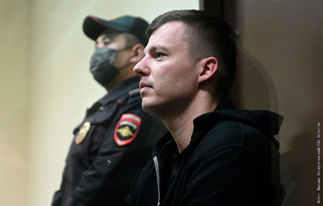 Блогер Артем Чекалин, обвиняемый в незаконных валютных операциях с использованием подложных документов, на заседании в Троицком районном суде в Москве