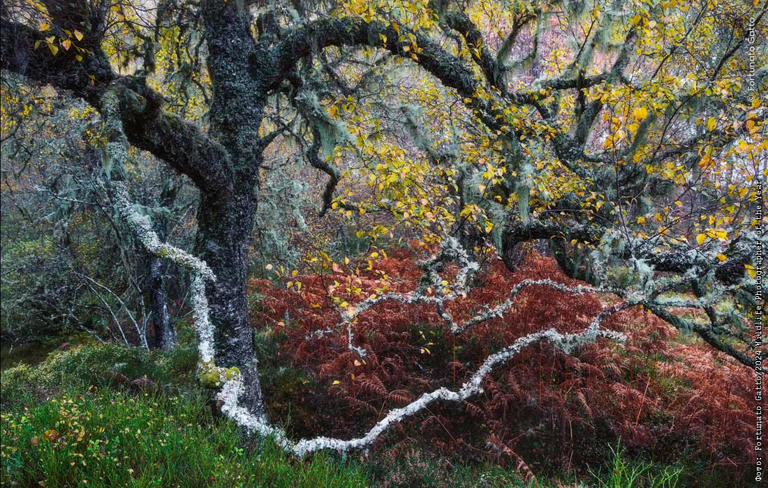 Победитель в категории "Растения и грибы". Дерево, покрытое бледными лишайниками, в долине Глен Аффрик в Шотландии.