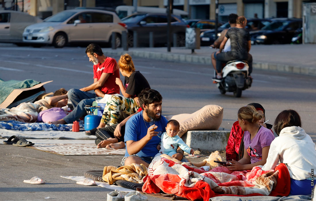 Внутренне перемещенные жители Ливана в центре Бейрута во время военной операции Израиля