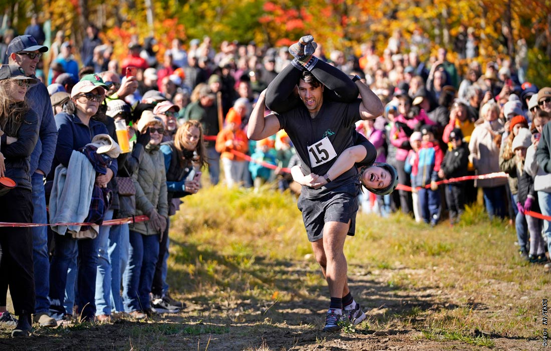 Североамериканский чемпионат по переноске жен в Ньюри, штат Мэн, США
