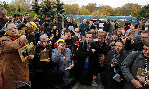 Православные активисты во время акции против панк-группы Pussy Riot у здания Мосгорсуда.