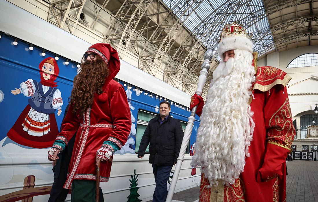 На Киевском вокзале Москвы состоялась презентация поезда Деда Мороза, который отправится в путешествие по России 19 ноября