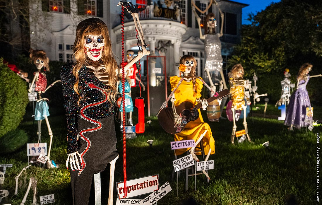 Скелеты в виде Тейлор Свифт, выставлены в Доме скелетов в преддверии Хэллоуина в Новом Орлеане, США