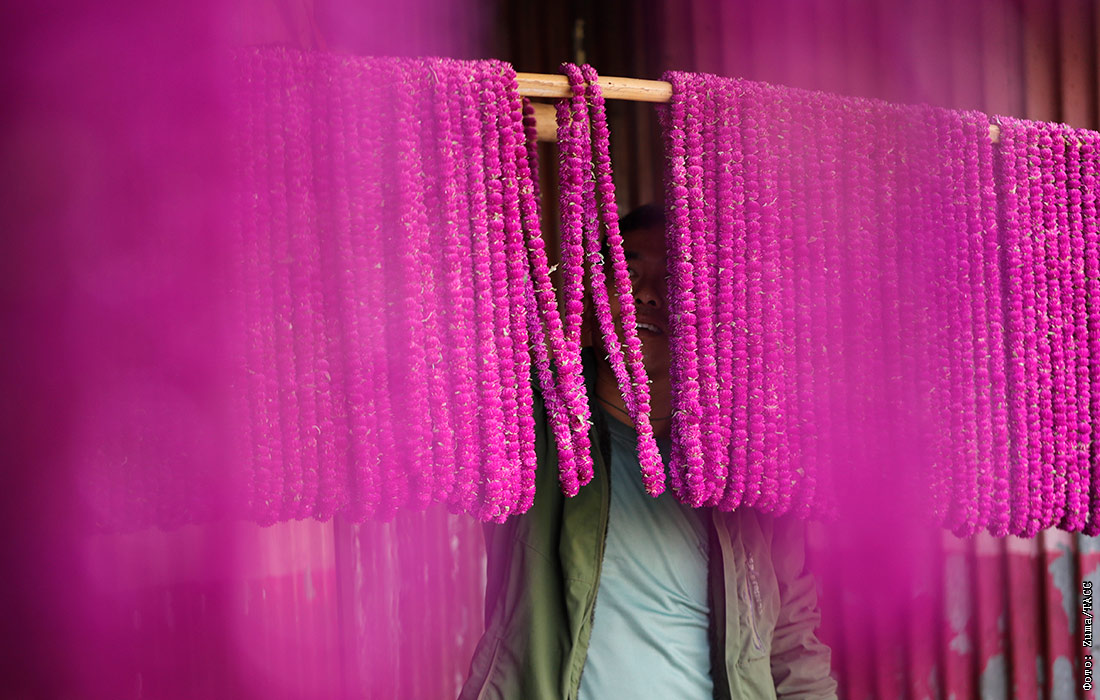 Сбор цветов амаранта в индийском Бхактапуре для праздника огней Дивали