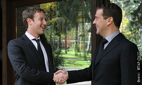 Премьер-министр РФ Дмитрий Медведев и генеральный директор социальной сети Facebook Марк Цукерберг во время встречи.