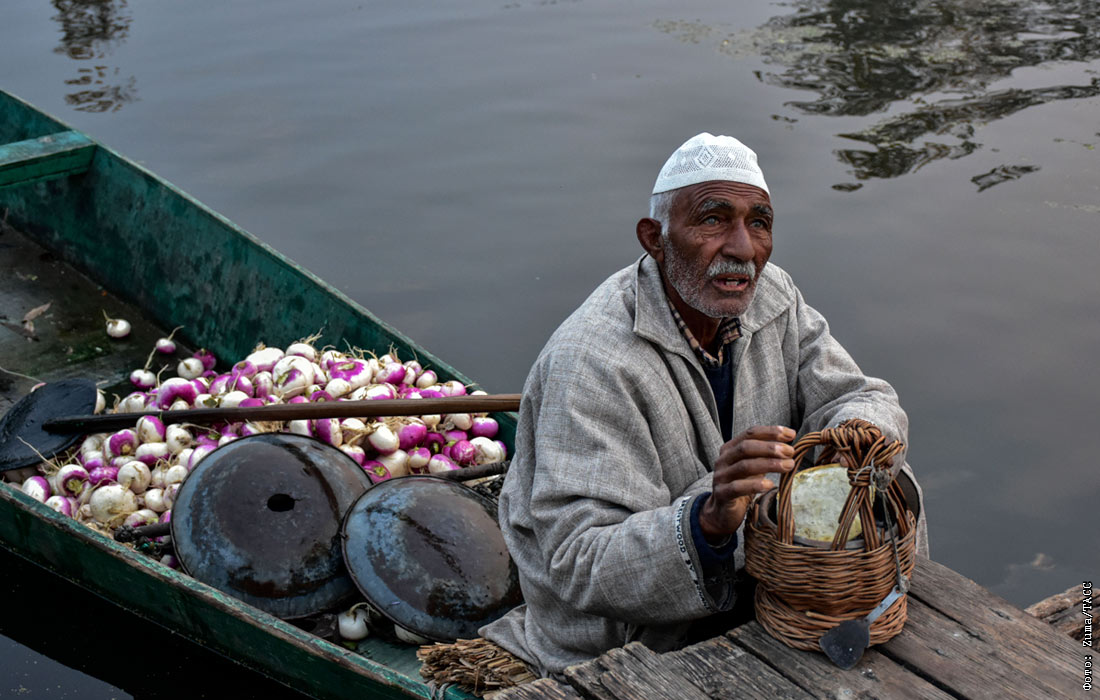 Продажа сезонных овощей на плавучем рынке в индийском Шринагаре