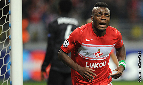 Спартаковец Эммануэль Эменике, забивший два гола в матче группового этапа Лиги чемпионов по футболу "Спартак" (Москва, Россия) - "Селтик" (Глазго, Шотландия).
