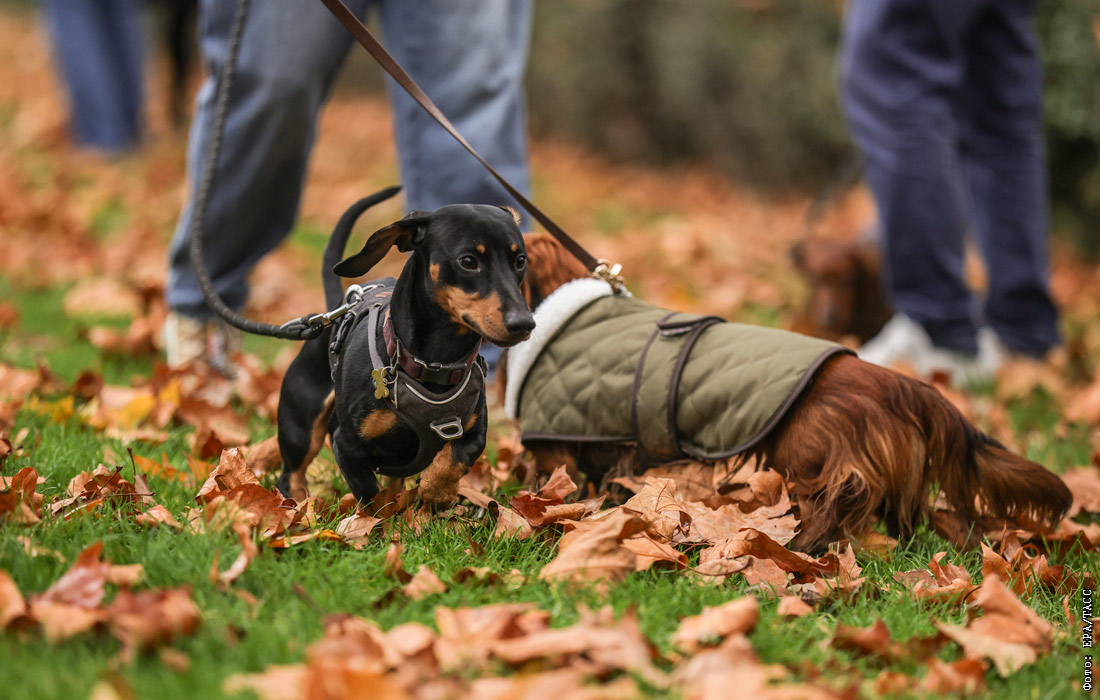 Марш такс и маленьких собак в Париже