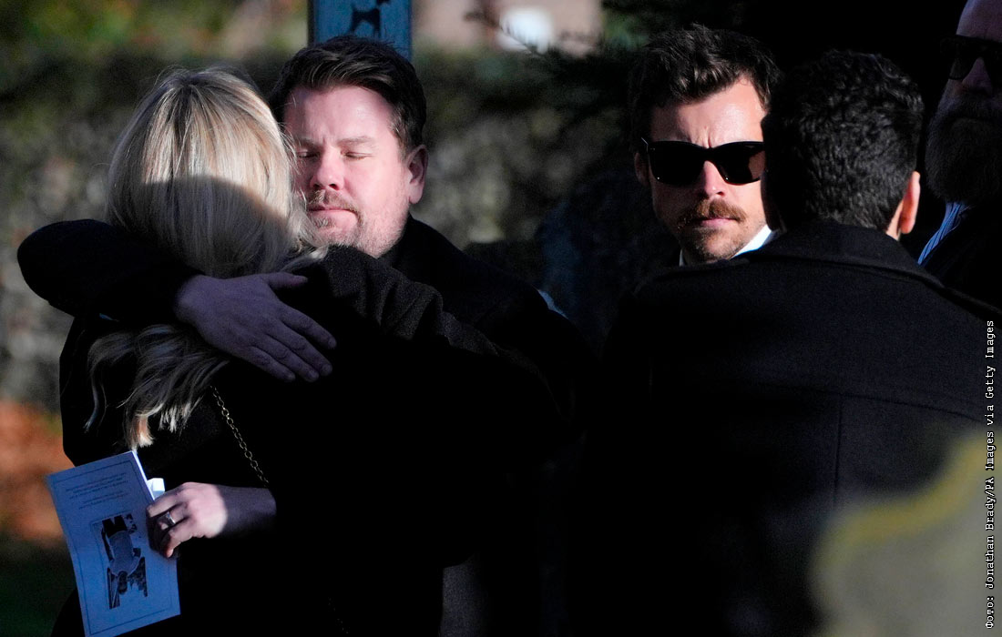 Похороны экс-участника группы One Direction Лиама Пейна прошли в пригороде Лондона. На фото: телеведущий Джеймс Корден (слева) и бывший участник группы One Direction Гарри Стайлс.