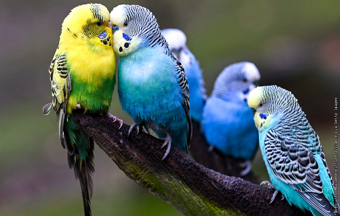 Волнистые попугайчики сидят в зоопарке Перлеберга, Германия