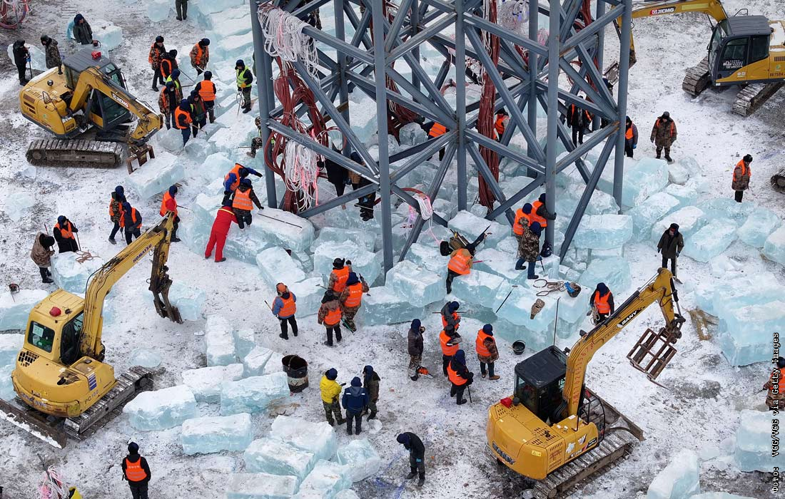 Подготовка к международному фестивалю снежных и ледяных скульптур в Харбине, Китай