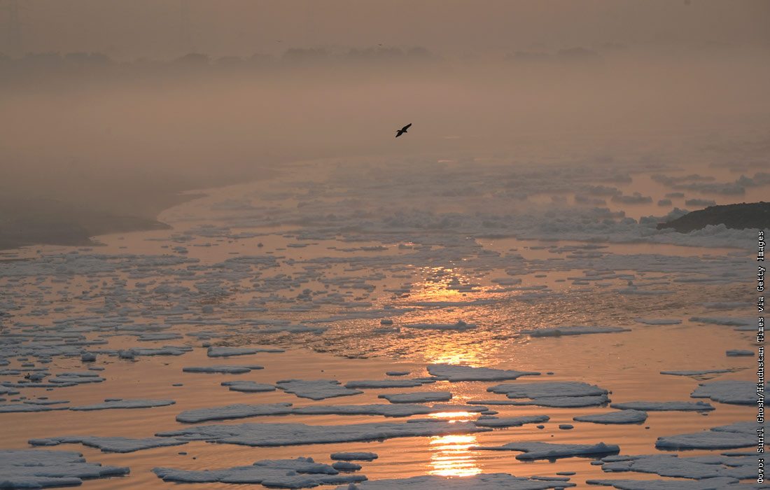 Токсичной пеной покрыта река Ямуна в Нью-Дели