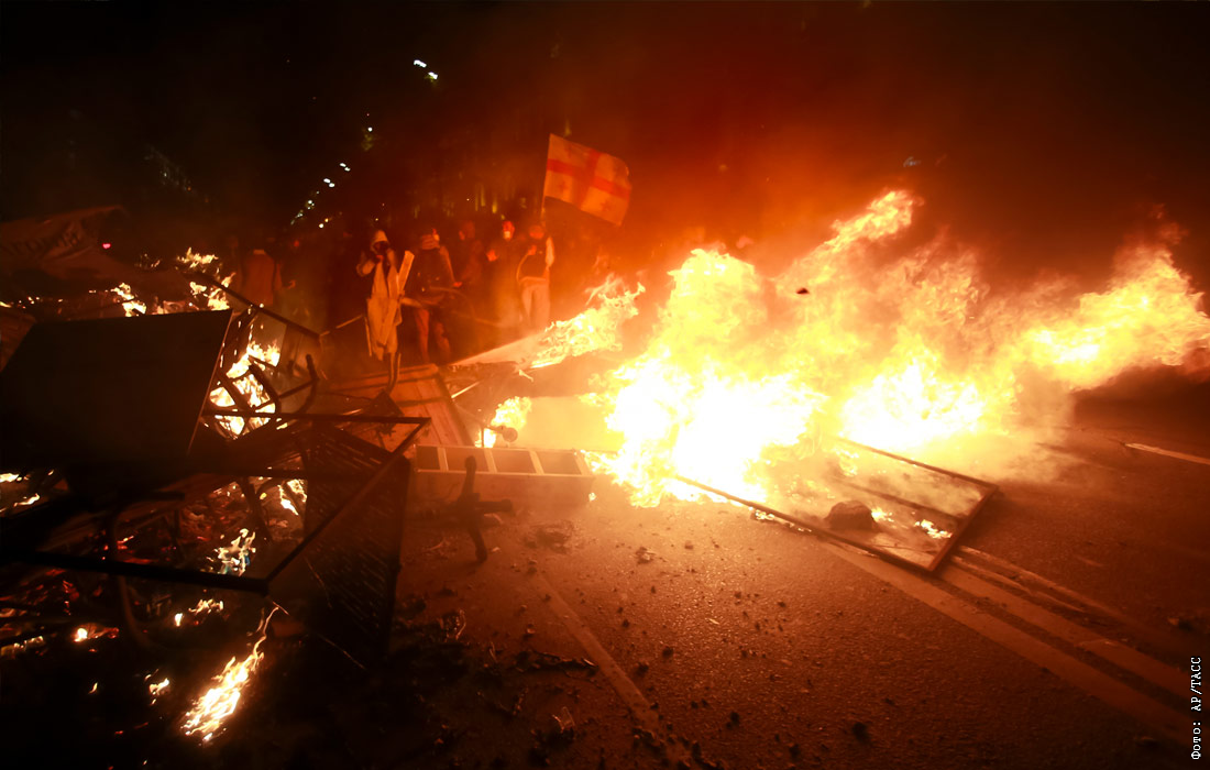 Акции протеста начались в Тбилиси возле парламента Грузии вечером 28 ноября после решения правительства отложить переговоры по вступлению в Евросоюз до 2028 года