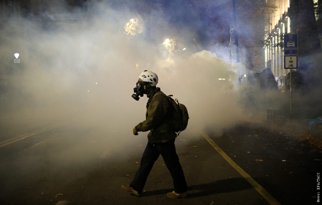 Акции протеста начались в Тбилиси возле парламента Грузии вечером 28 ноября после решения правительства отложить переговоры по вступлению в Евросоюз до 2028 года