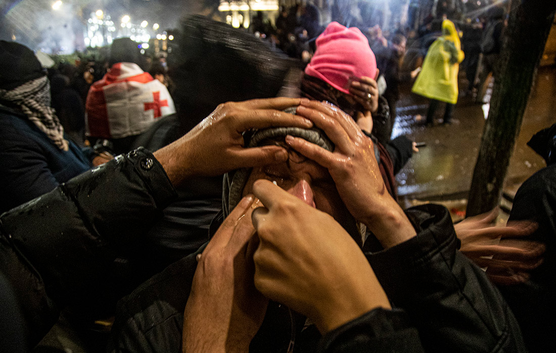 Акции протеста начались в Тбилиси возле парламента Грузии вечером 28 ноября после решения правительства отложить переговоры по вступлению в Евросоюз до 2028 года