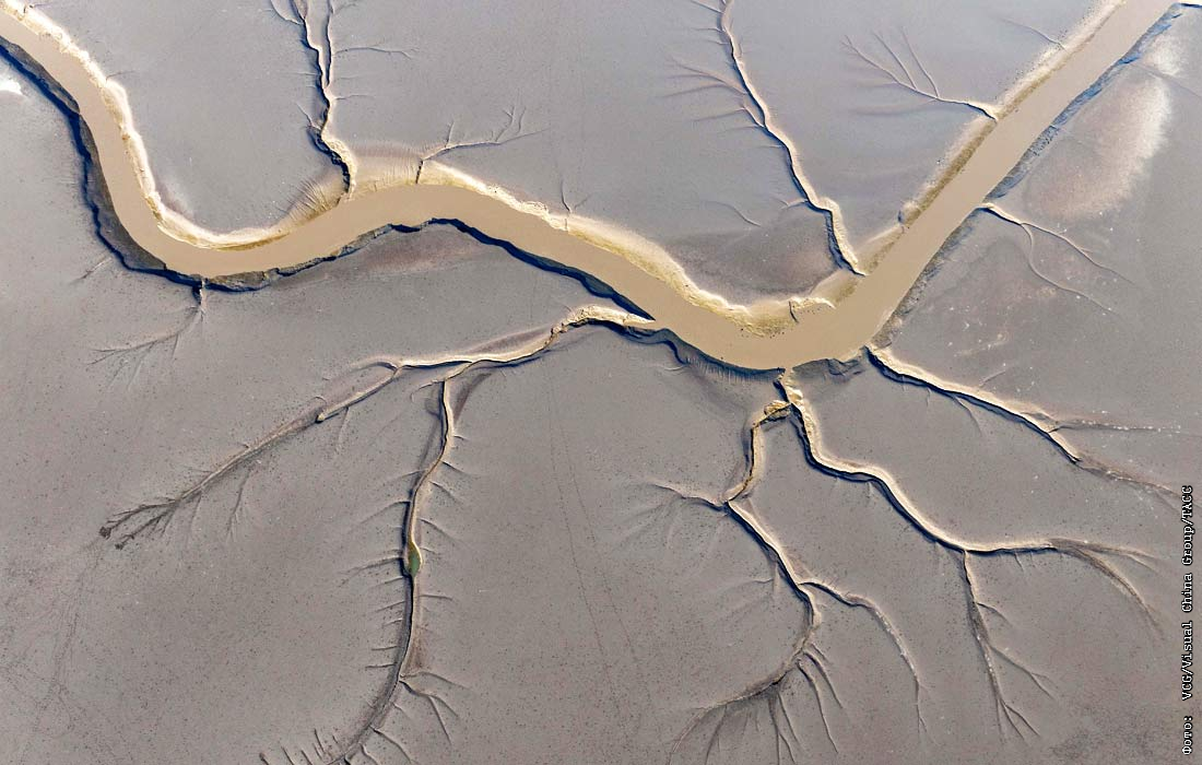 Узоры на водно-болотных угодьях Желтого моря после отлива в Китае