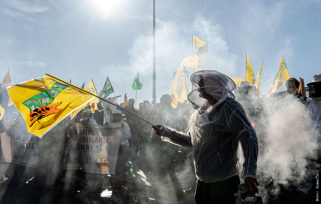 Акция протеста фермеров в Мадриде против соглашения о свободной торговле между ЕС и Mercosur (общий рынок стран Южной Америки)