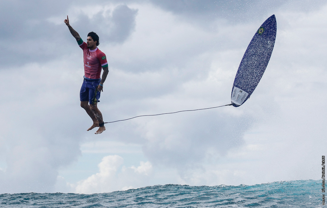 Бразилец Габриэль Медина во время соревнований по серфингу на Таити в рамках Олимпийских игр 2024 года