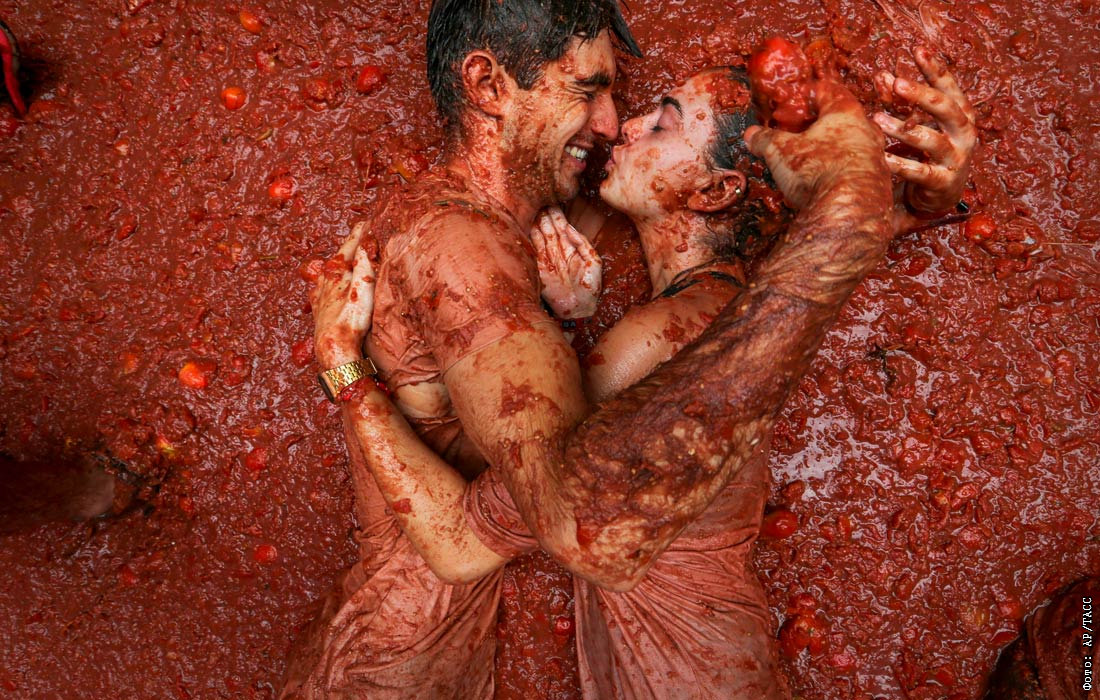 Участники "томатной битвы" в испанском городе Буньоль