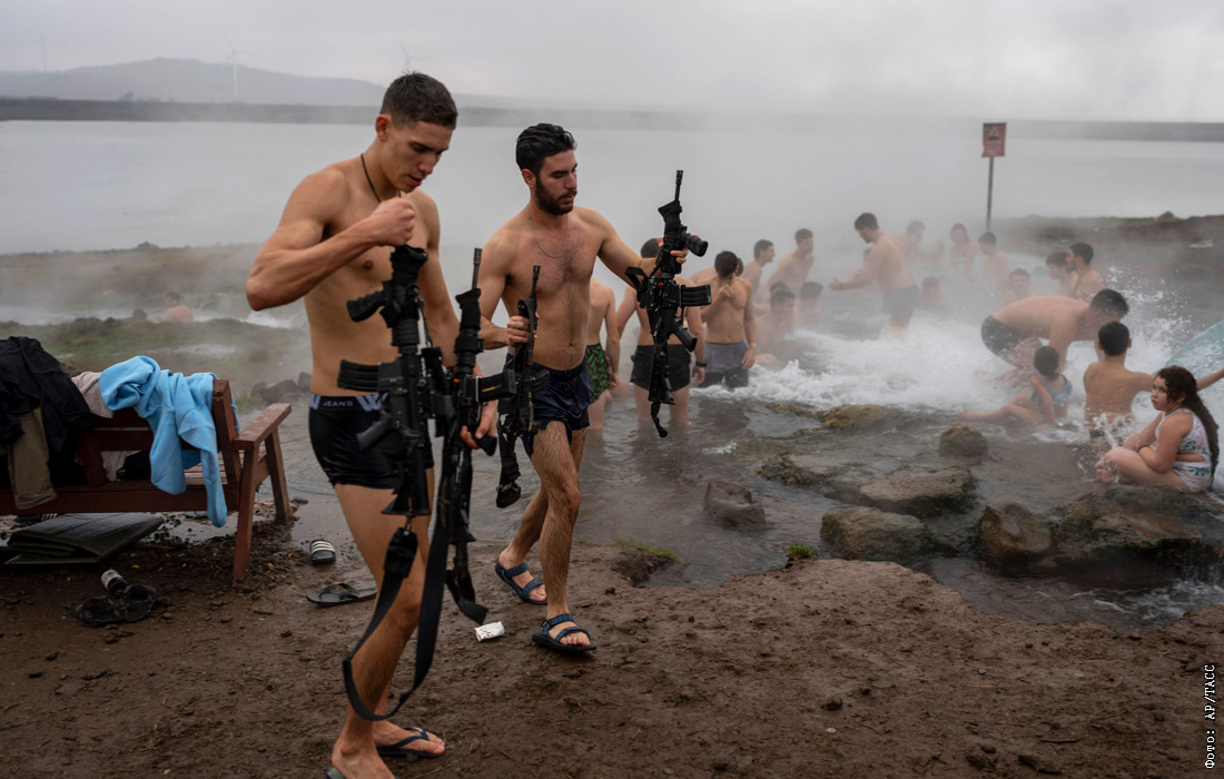 27 ноября вступила в силу договоренность о прекращении огня между Израилем и "Хезболлой". Израиль и Ливан приняли поддержанное США предложение о прекращении 13-месячного пограничного конфликта, который в сентябре перерос в полномасштабную войну. На фото: израильские солдаты вместе с местными жителями купаются в термальных источниках близ горы Бентал на Голанских высотах.