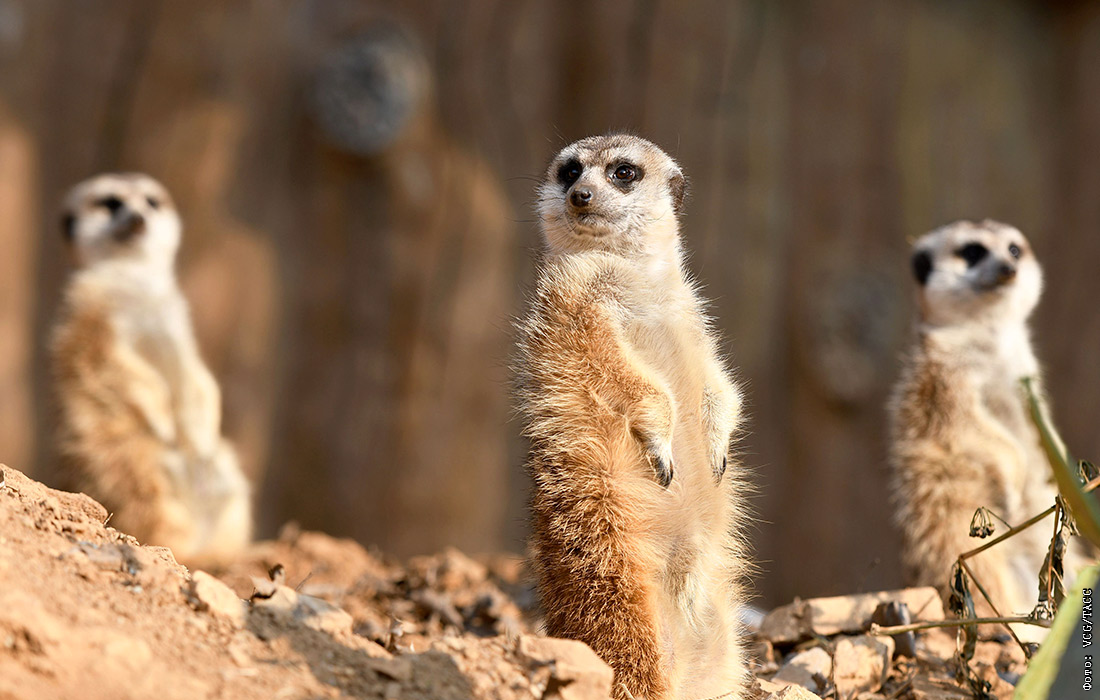 Сурикаты в парке дикой природы Циндао в китайской провинции Шаньдун