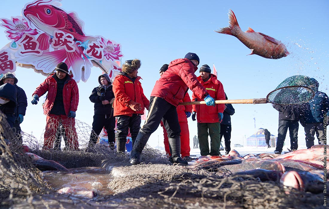 Зимняя рыбалка на озере Ляньхуань в Китае