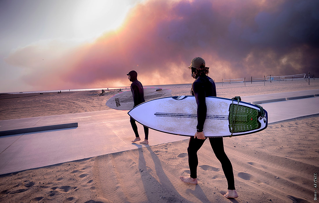 В американском штате Калифорния объявлен режим бедствия в связи с лесными пожарами. Они начались во вторник, огонь быстро распространяется из-за ветра. По меньшей мере пять человек погибли и более 1 тыс. строений уничтожены пожарами в районе Лос-Анджелеса.